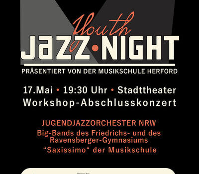 Das JugendJazzOrchester NRW zu Gast in Herford! In der ersten Konzerthälfte präsentieren sich die Big-Bands der Gymnasien und das Saxophonensemble „Saxissimo“ der Musikschule. In der zweiten Konzerthälfte übernimmt das JJO NRW mit seinem mitreißenden, stilistisch vielfältigen und ebenso facettenreichen Programm. Genießen Sie jazzige Töne bei der Youth Jazz Night im […]